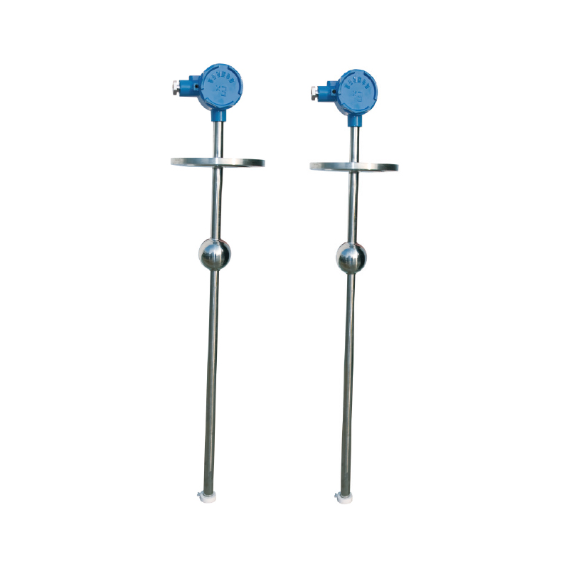 JC-56UB係列磁性浮球液位變送器(以下簡稱變送器)是利用帶環形磁鋼的浮球隨液位升降,使主管內的幹簧電阻組合模塊依次吸合,電阻值發生連續變化,經專用轉換模塊轉換成4-20mADC輸出,可直接與控製係統連接,或與本公司生產的智能控製儀表組合從而實現對現場液位的測量報警控製。