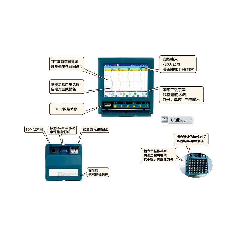 通過各種接口與儀表連接,對儀表進行遠程監控、數據采集、數據備份等操作通過標準MODBUS RTU協議和OPC接口軟件包,可無縫連接各種軟件